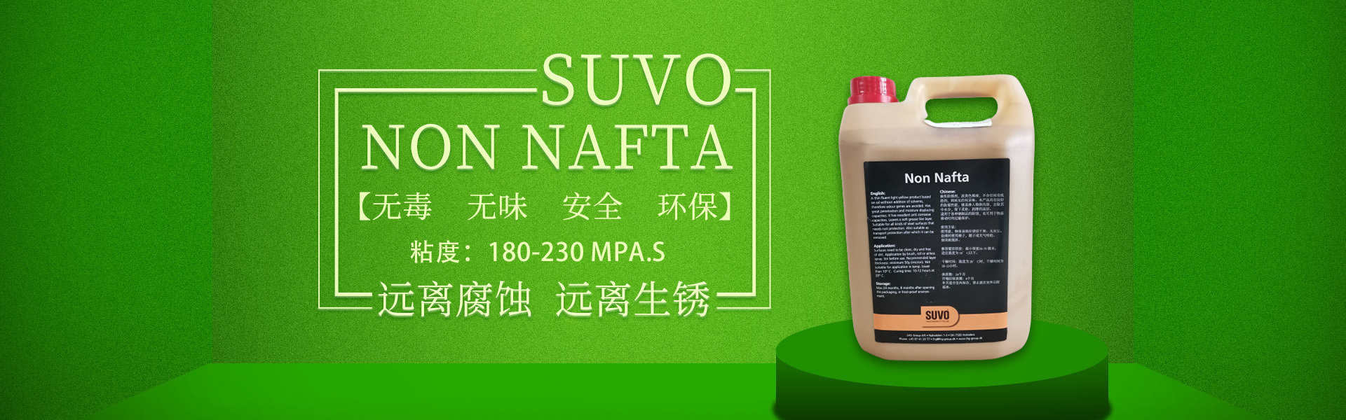 SUVO Non Nafta 是一款無毒、無味、安全、環(huán)保的油基/蠟基防銹產(chǎn)品,不含溶劑,內(nèi)含超強(qiáng)的防腐劑。 涂刷本產(chǎn)品后,會在被保護(hù)的工件表面形成一層80-100微米厚的油脂、蠟基保護(hù)膜,保護(hù)金屬產(chǎn)品免受惡劣環(huán)境侵害,遠(yuǎn)離腐蝕,遠(yuǎn)離生銹。 產(chǎn)品適合于鋼鐵制品在陸地存儲或海上運輸過程中的長期防腐,防銹。本產(chǎn)品非常易于被石油精/煤油清洗劑清除,清洗過程不損傷工件表面,不污染施工環(huán)境。